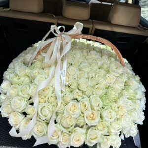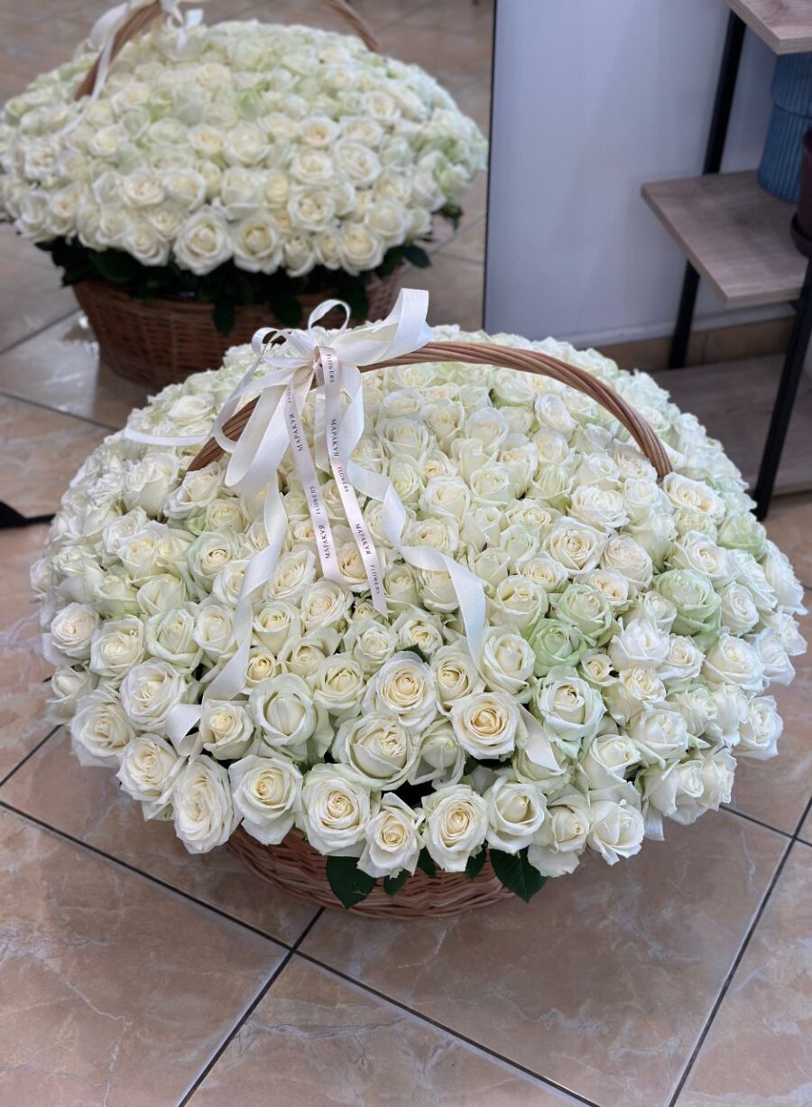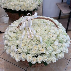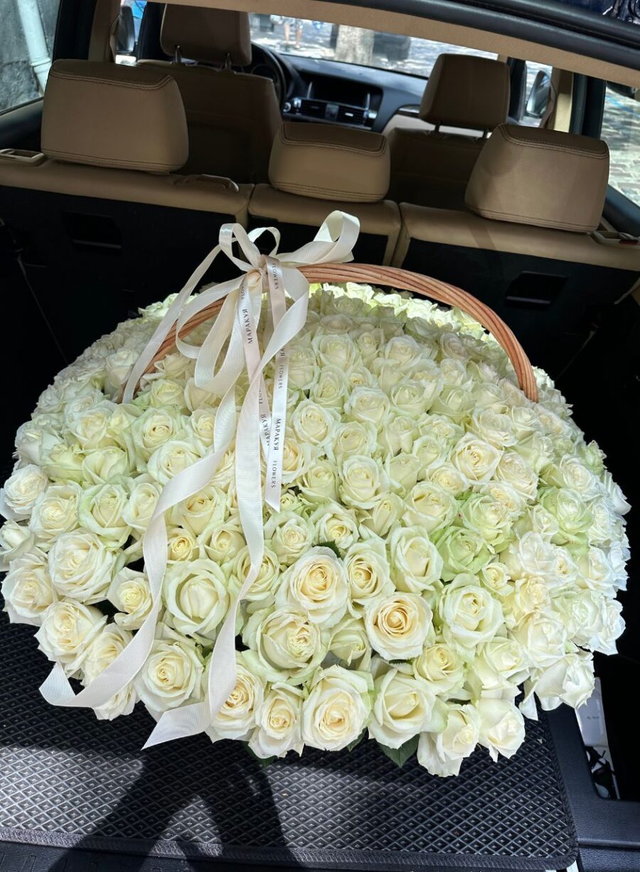 225 білих троянд в корзині