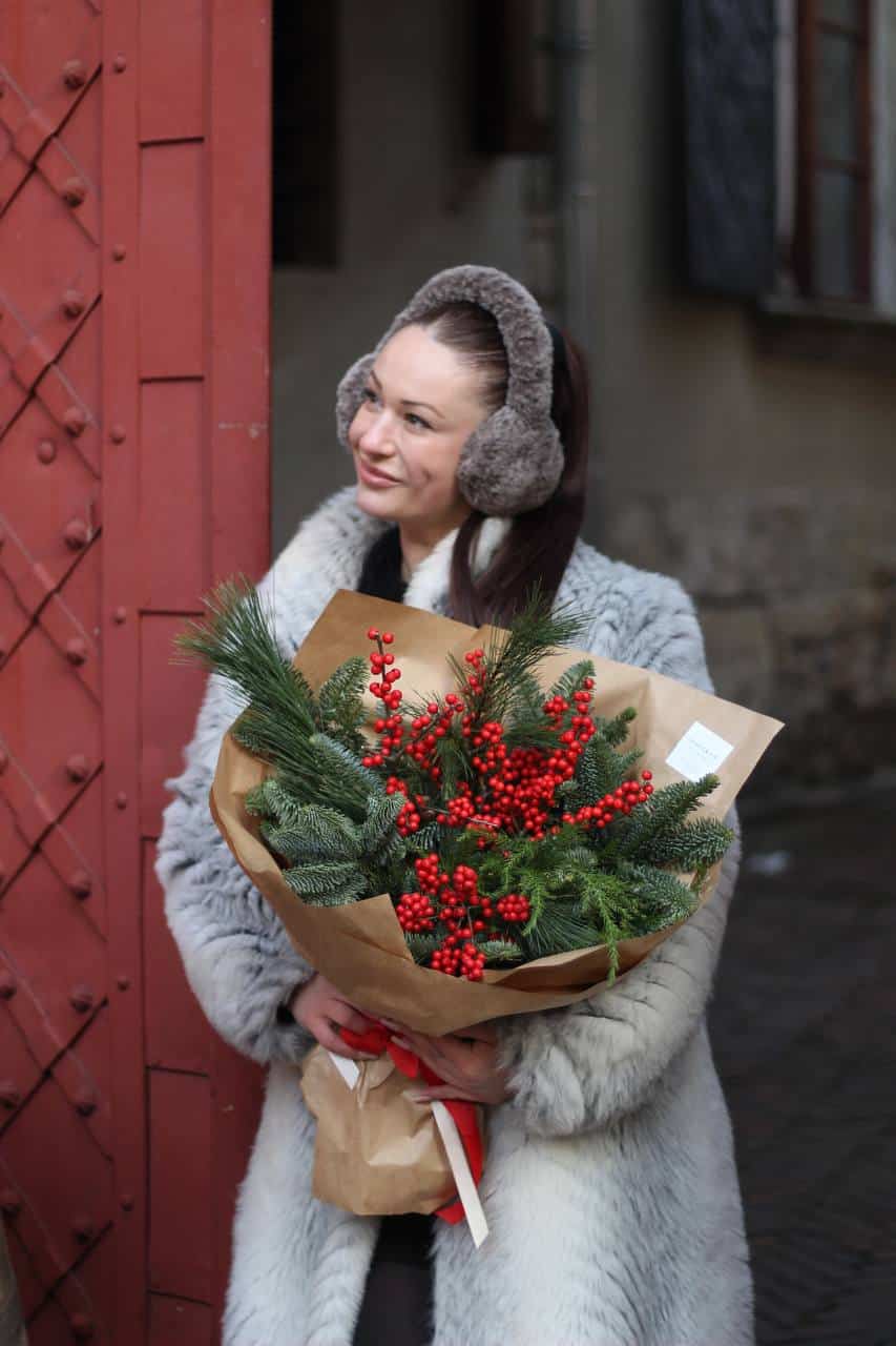 Склад букету: ілекс(3 шт.) , різні види хвої, упакування.